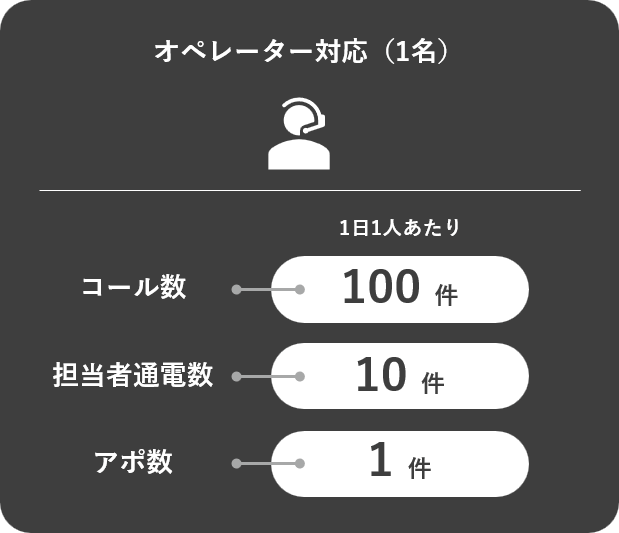 | 担当者通話率 | 基準を人とした場合に、 前後1%以内 | 通話成果より 効率性を重視 | 基準点 |